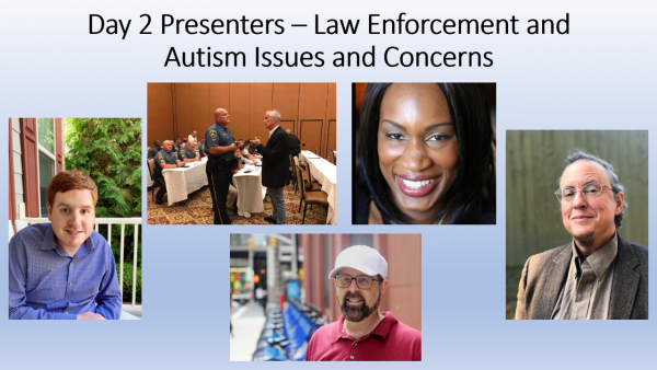Saturday, October 16 – Day 2Law Enforcement and Autism Issues and Concerns11:00-12:30 pm ET - Keynote presented byDennis Debbaudt, Managing Partner, Debbaudt Legacy Productions, LLC (includes Q&A) 2:00-3:30 pm ET - Panel of autistics discusses law enforcement and autism issues and concerns (includes Q&A):